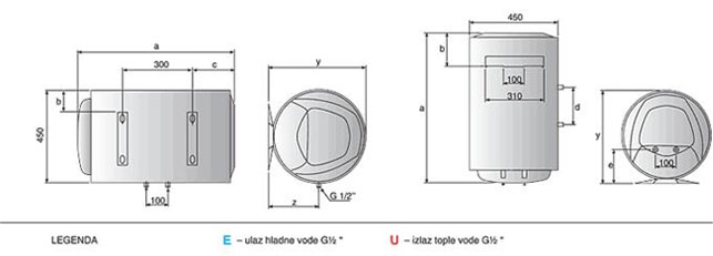 vertikalno ili horizontalno (samo modeli 80 i 100).