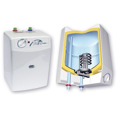 Električni akumulacioni zagrejači vode iz serije TALAS 8 litara su zagrejači otvorenog tipa koji su predviđeni za rad sa ugrađenom niskopritisnom baterijom za mešanje vode. Posuda je izra|ena od visokolegiranog nerđajućeg čelika C.4580, koji je fizioloski neutralan, pa se voda iz ovih posuda može koristiti u prehrambene svrhe. Kućište zagrejača vode je izrađeno od kvalitetne plastične mase. Toplotna izolacija je izrađena od savremenog sintetičkog materijala tako da su toplotni gubici minimalni, a voda ostaje dugo u toplom stanju. Zagrejače vode iz ovih serija proizvodimo u dve verzije, za gornju i donju montažu.