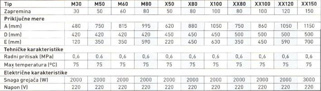 | Zapremina (l) | D (mm) | A (mm) | H (mm) |